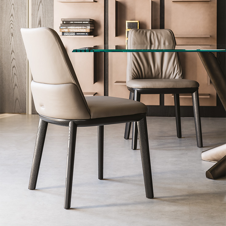 餐椅,可选有扶手或无扶手,餐椅框架为自然色白蜡木(frN),Canaletto胡桃木色白蜡木(frNC),烟熏橡木色白蜡木(frRB)或哑光开放漆黑色(fr73)白蜡木。座椅和靠背材质为布料、超纤磨砂皮、合成皮革或软皮制成。表层不可拆卸。请根据材质样品选择。