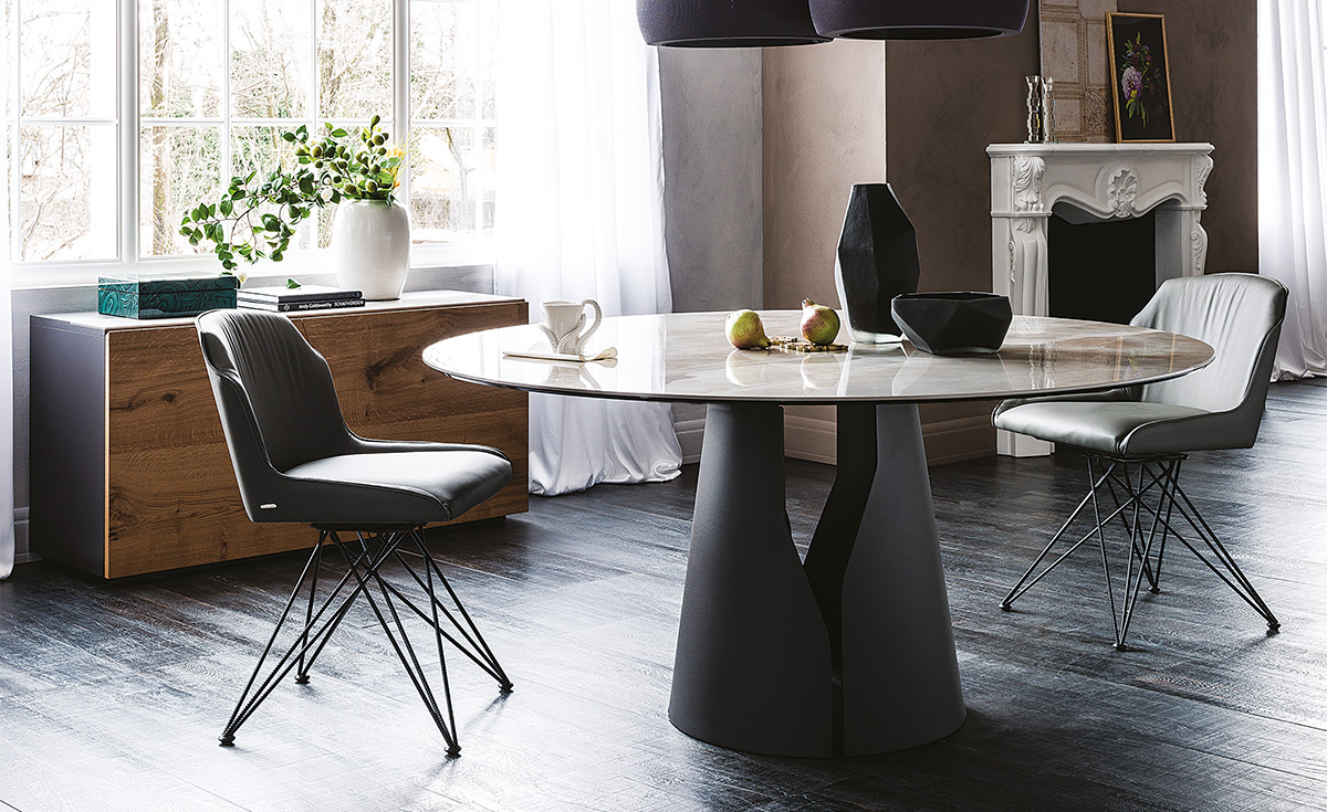 Giano现代餐桌系列为餐厅增添一丝现代而简约的风格。朴素的风格印记和天马行空的观感亦让这款设计感桌子成为一件永恒的家具。圆形钢质底座上有一个精准的槽,可以让使用者充分领略其内部结构。